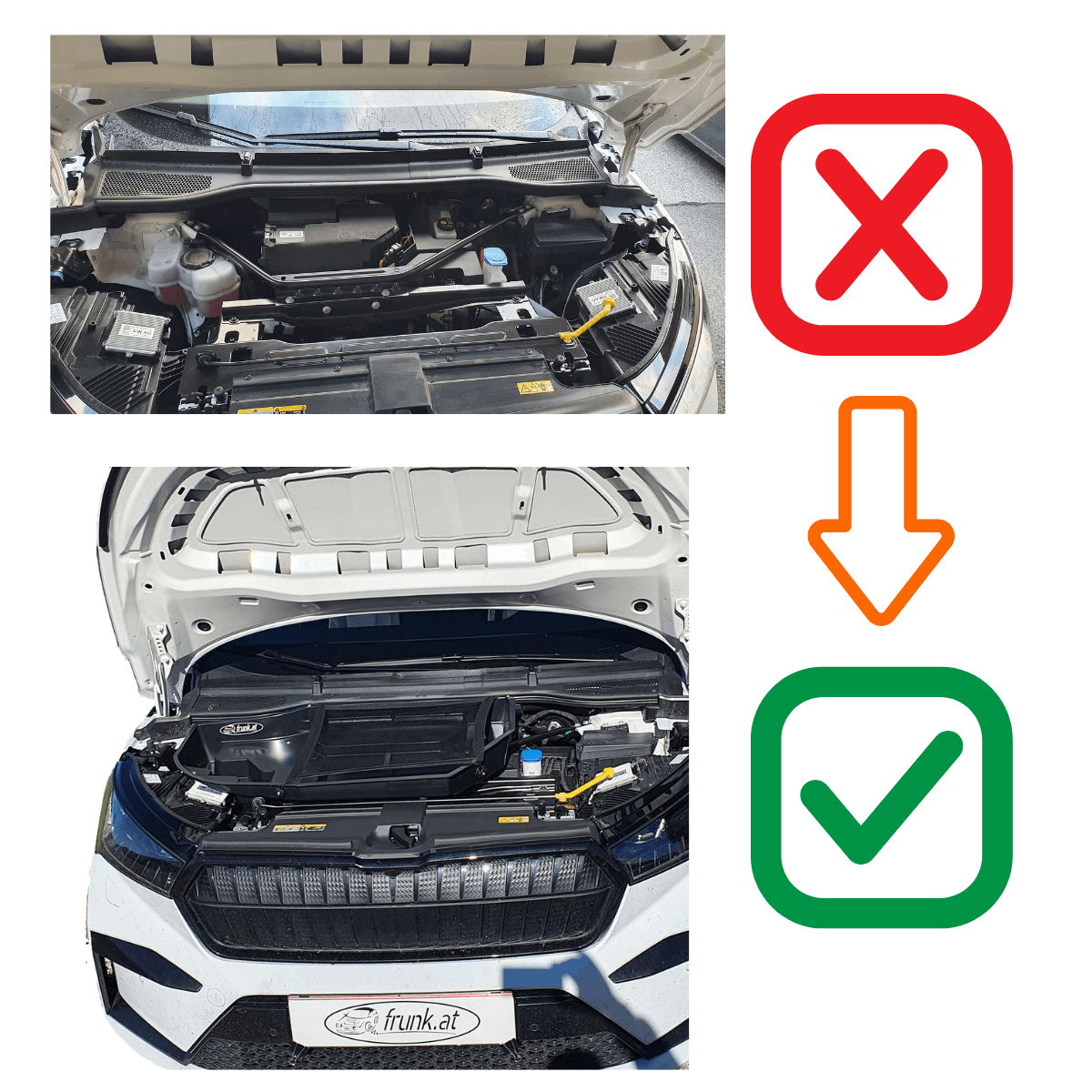 Der frunk passt bei allen Ausstattungsvarianten mit Heck- und Allradantrieb bis Baujahr 2024. ( Enyaq iV 60, Enyaq iV 80, Enyaq iV 85, Enyaq iV 80X, Enyaq 85X, Enyaq iV RS, Sportline, Coupe )